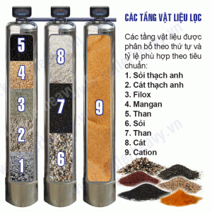 *Hệ thống lọc 3 cột lọc được mô tả các lớp vật liệu như sau.