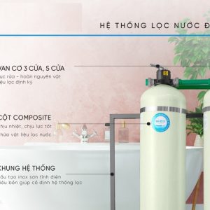Hệ thống lọc nước đầu nguồn 2 cột composite van cơ